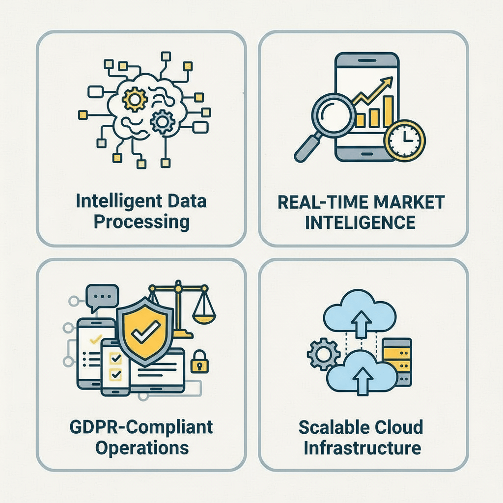 Solution: Hir Infotech implemented AI-powered scraping infrastructure to monitor competitor pricing across 15 major grocery platforms in real-time. Our solution extracted pricing data, promotional offers, and inventory levels every 30 minutes, feeding directly into the client’s pricing optimization algorithms.