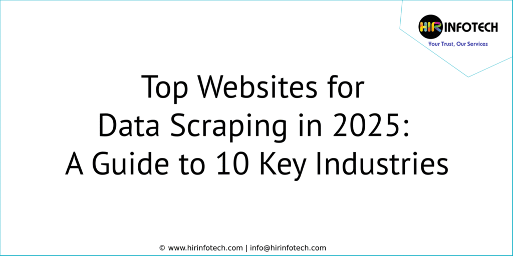 Need help extracting data from these top websites? Hir Infotech provides expert web scraping, data extraction, and data analytics services. We build custom solutions to meet your specific needs, handling complex websites and large-scale data collection, regardless of industry. Contact us today for a free consultation and let’s discuss your data needs!